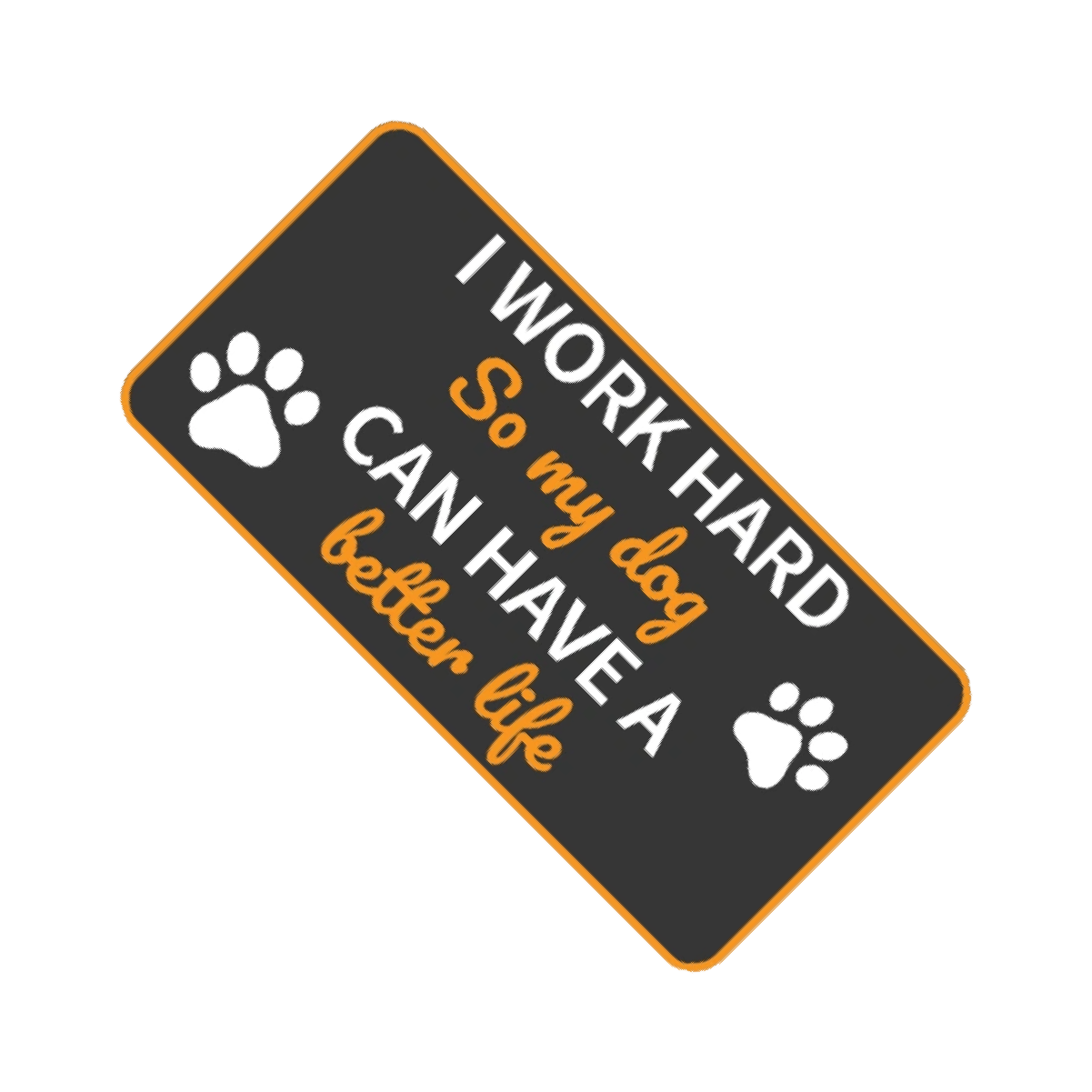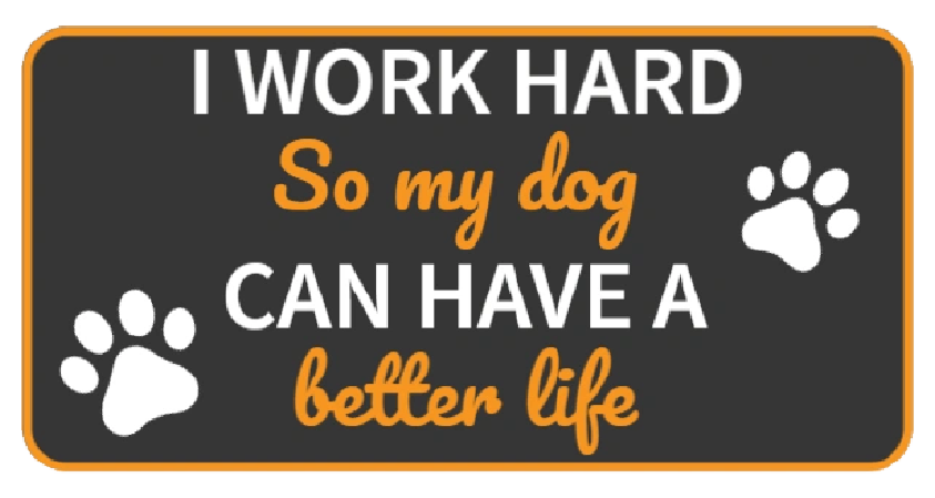 This charming sign proudly declares, “I work hard so my dog can have a better life,” accompanied by adorable dog paw prints on each side.